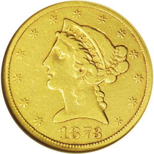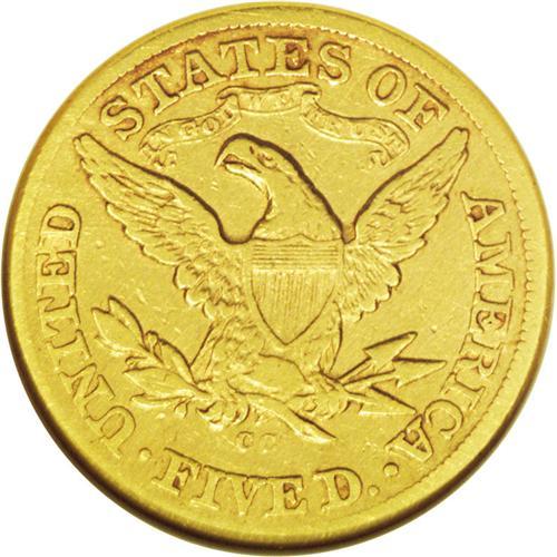 <B>1873-CC<$5>--Cleaned--ANACS. VF30 Details.</B></I> The 1873-CC is the second rarest Carson City half eagle, bowing only to the 1870-CC. Just 7,416 pieces were struck, and there are perhaps fewer than 100 survivors. This thickly hairlined piece retains sharp details on the stars and eagle's wings, while Liberty's hair is blunt from wear and an indifferent strike.