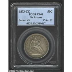 1873-CC 50C No Arrows XF40 PCGS. Boldly detailed for the grade, with subdued green-gray color and so