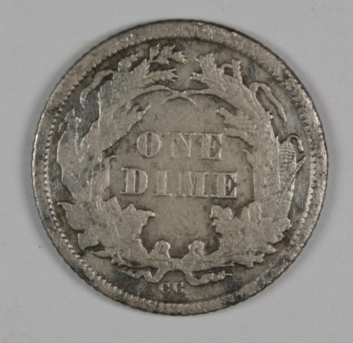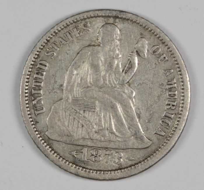 1873-CC ARROWS SEATED DIME, XF EXTREMELY RARE! ONLY A FEW EXIST, RED BOOK 17K