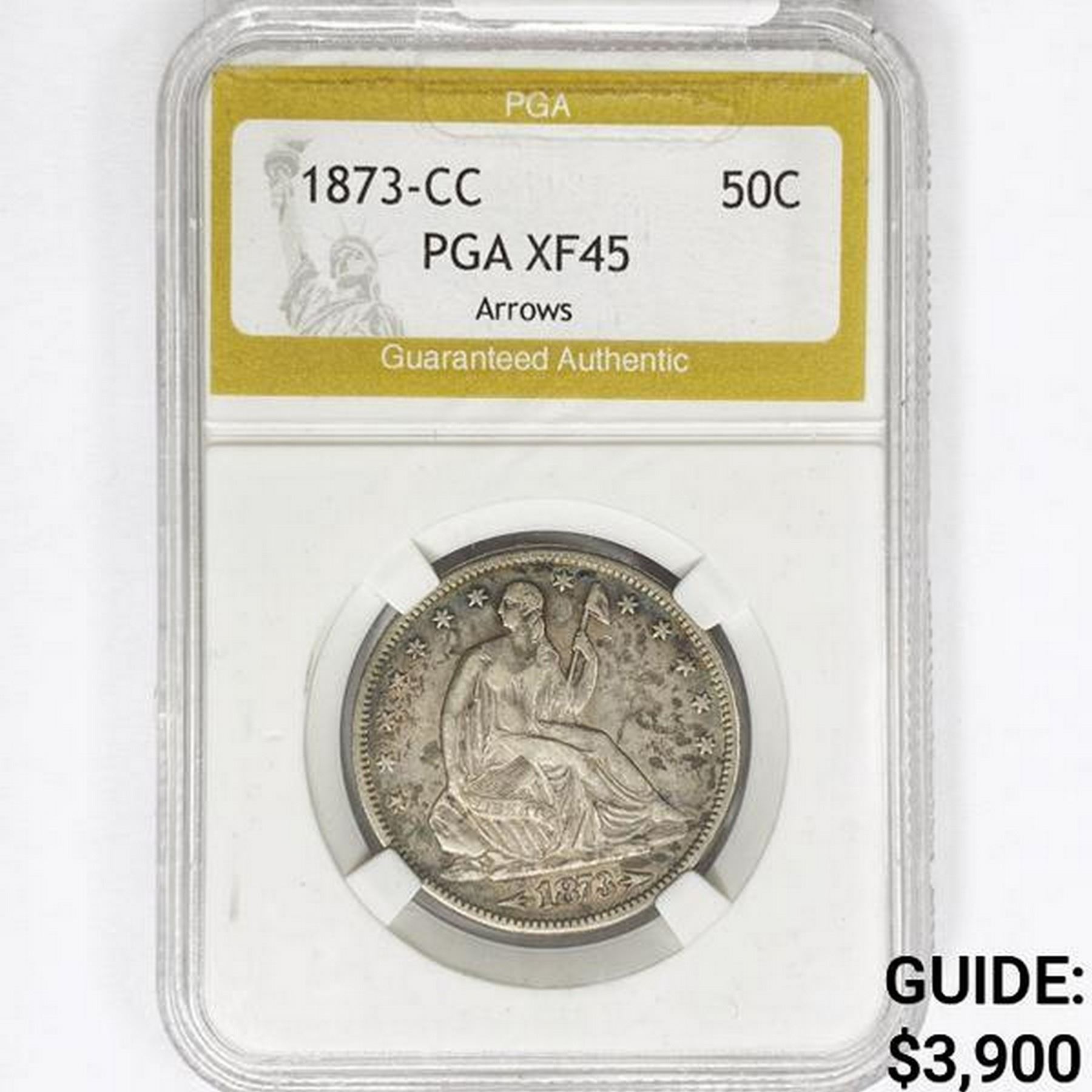 1873-CC Seated Liberty Half Dollar PGA XF45 Arrows