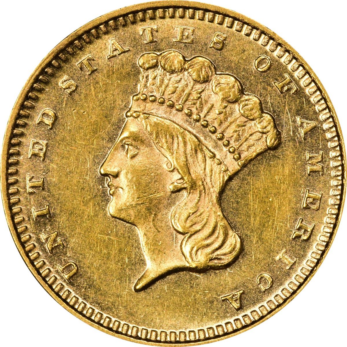 This satiny pale yellow-gold specimen is lustrous and well-struck in all places save the 7 of the date. Choice for the grade with high aesthetic appeal. PCGS #7574