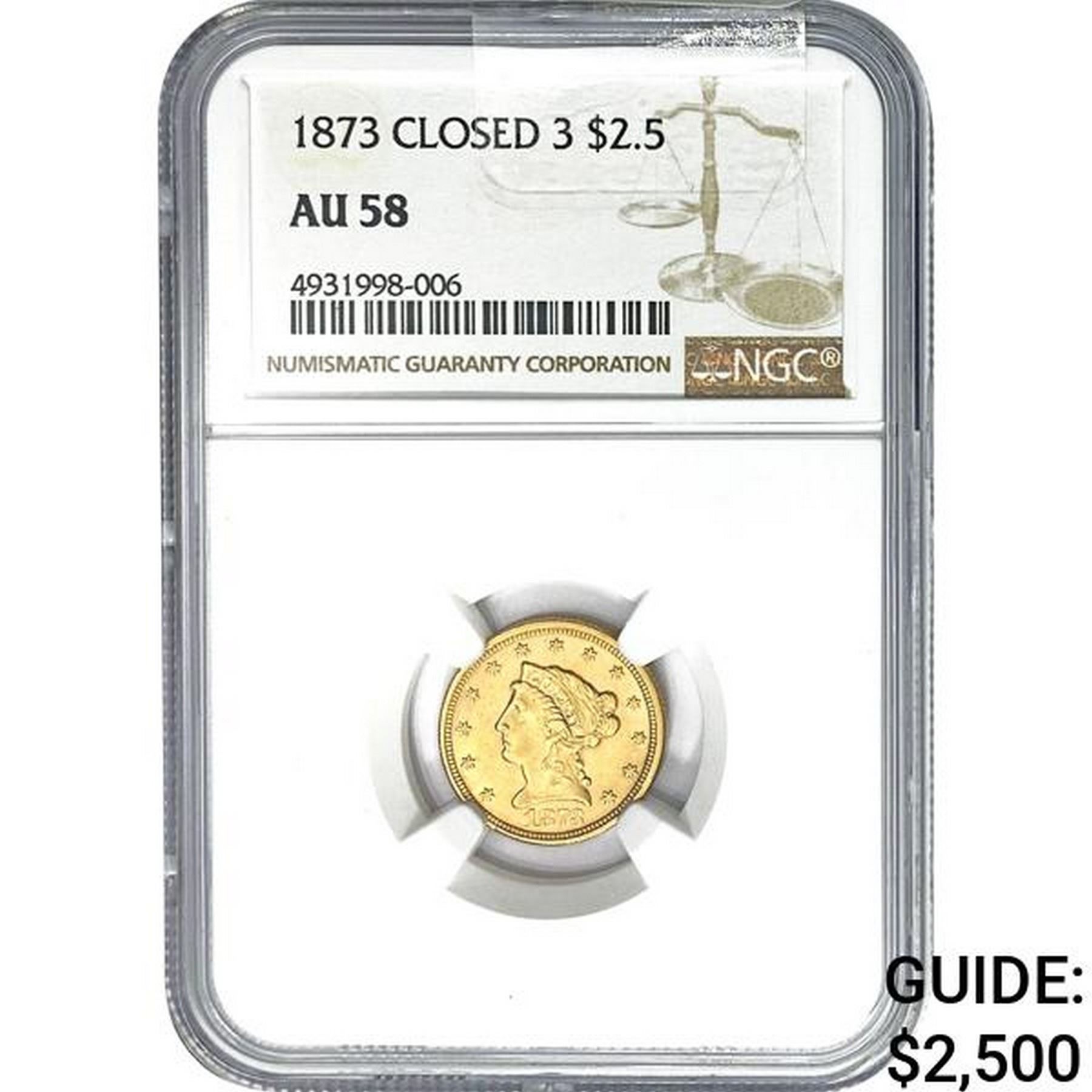 1873 Closed 3 $2.5 NGC AU58