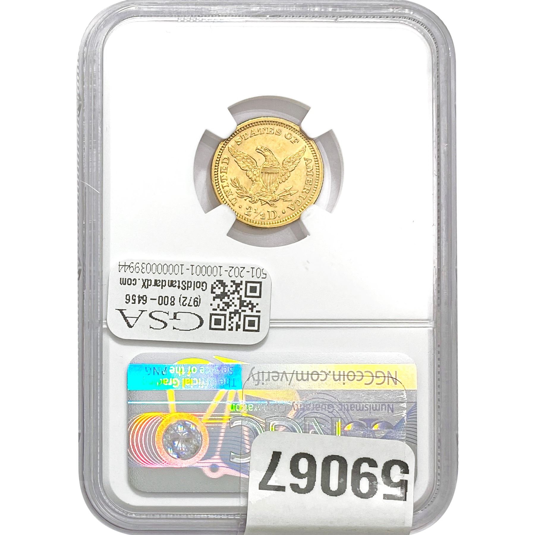 e. Coins sold referencing a third-party grading service are sold “AS IS” without any express or implied warranty, except for a guarantee by GSA that they are genuine. Removal or alteration of the holder, voids all of Bidder’s claims concerning that Product. Certain warranties may be available from the grading services and Bidders are referred to them for further details: Numismatic Guaranty Corporation (NGC), PO Box 4776, Sarasota, FL 34230, www.ngccoin.com/services/writtenguarantee.asp; Professional Coin Grading Services (PCGS), PO Box 9458, Newport Beach, CA 92658, www.pcgs.com/guarantee.html; ANACS, 6555 S. Kenton St., Ste. 303, Englewood, CO 80111; and Independent Coin Grading Co. (ICG), 7901 East Bellview, Ave., Suite 50, Englewood, CO 80111.