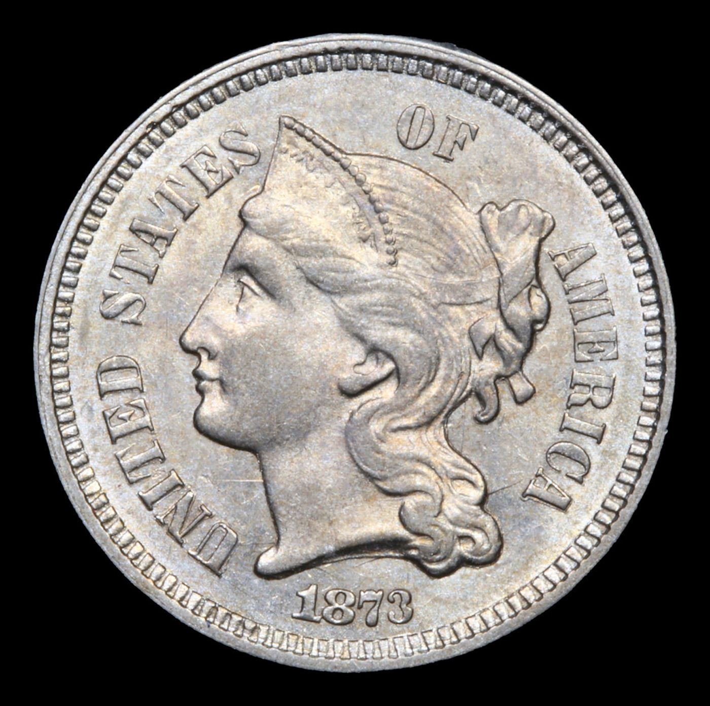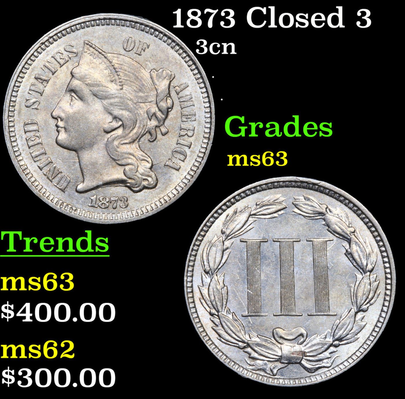 1873 Closed 3 Three Cent Copper Nickel 3cn Grades Select Unc.