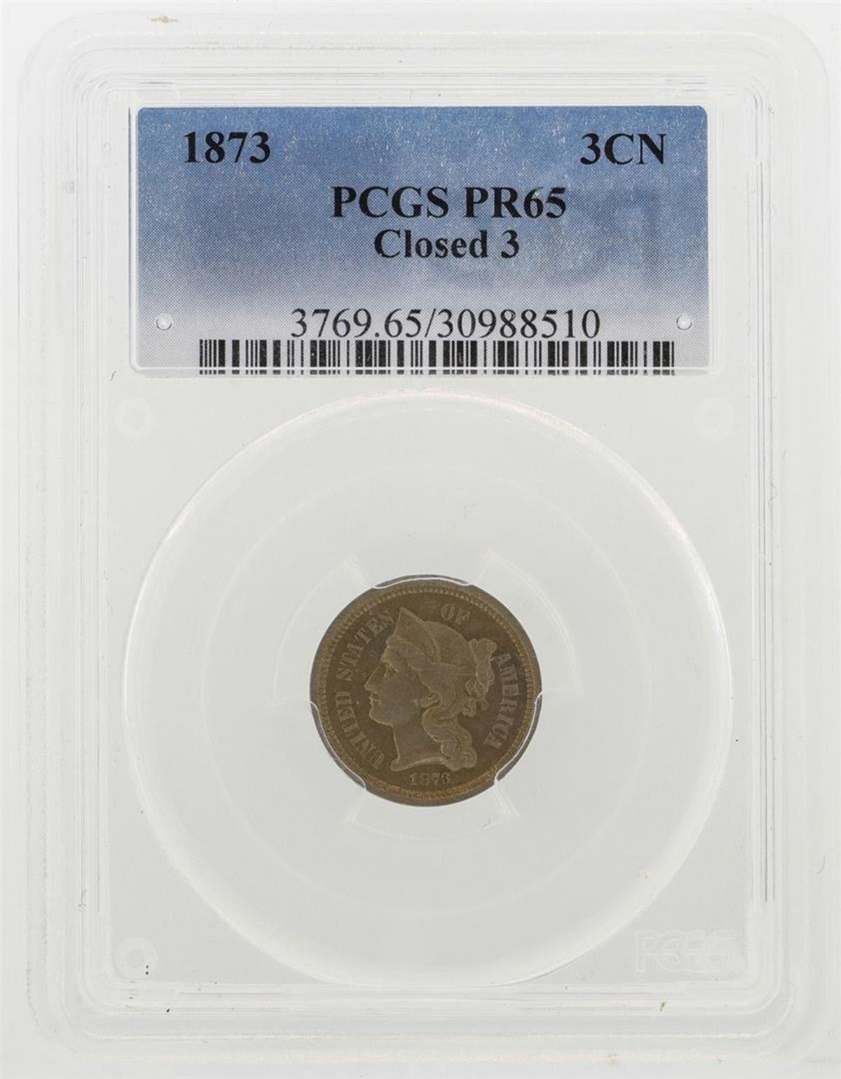 One 1873 Closed 3 Three Cent Nickel Proof Coin PCGS PR65. PCGS Certified.