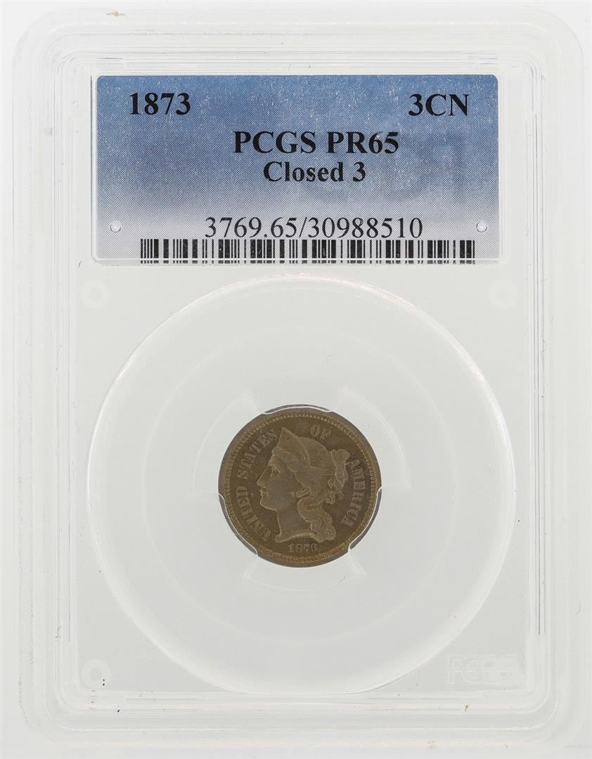 One 1873 Closed 3 Three Cent Nickel Proof Coin PCGS PR65. PCGS Graded.