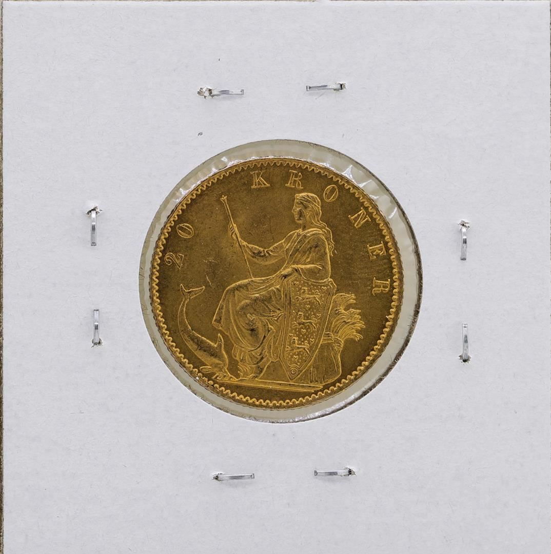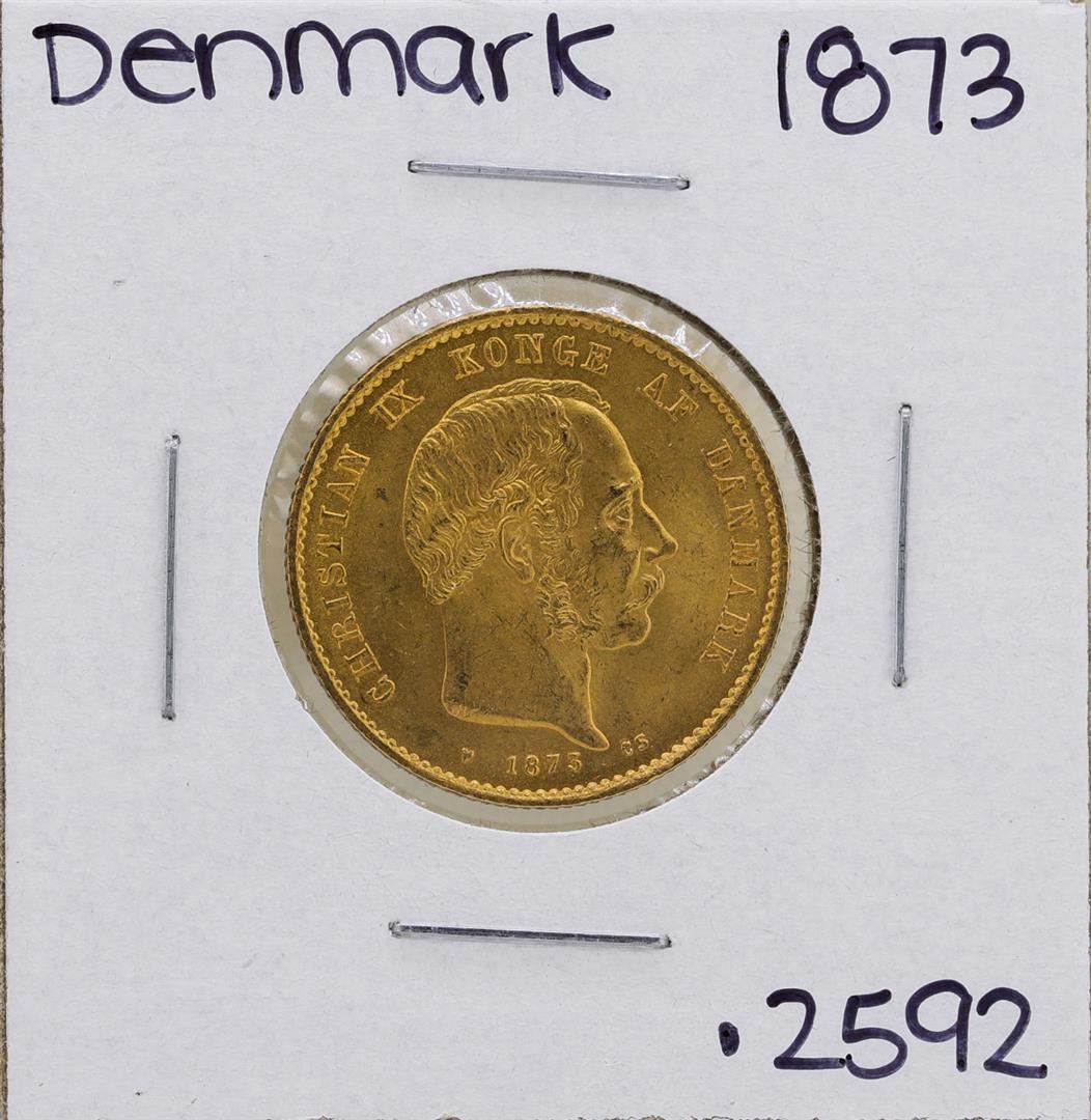 One 1873 Denmark Christian IX 20 Kroner Mermaid Gold Coin.