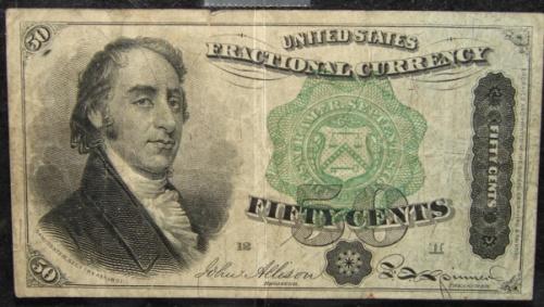 1873 FIFTY CENT FRACTIONAL CURRENCY NOTE. Fine.