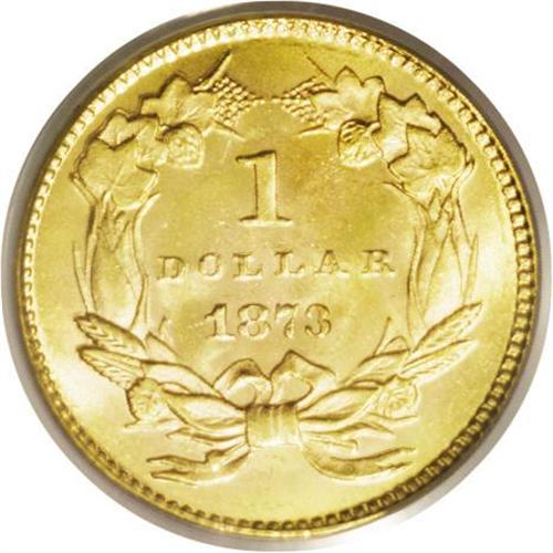 1873 G$1 Open 3 MS65 PCGS. Along with the 1874, the 18