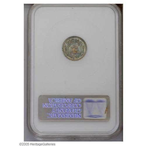 <B>1873<H10C> MS64 NGC.</B></I> Lightly marked and dominated by copper-gold, cobalt-blue, and maroon coloration on both sides. A high-end near-Gem that because of its eye appeal is certainly worth a premium bid.