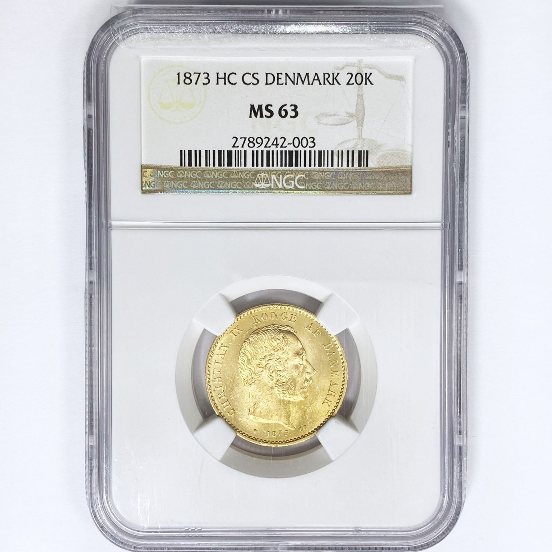 1873 HC CS 20K .26oz Denmark Gold NGC MS63