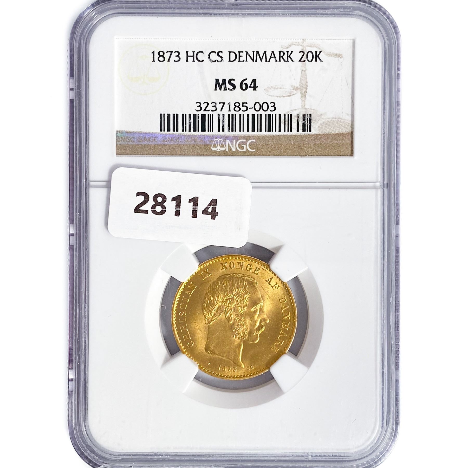 1873 HC CS 20K .26oz Denmark Gold NGC MS64
