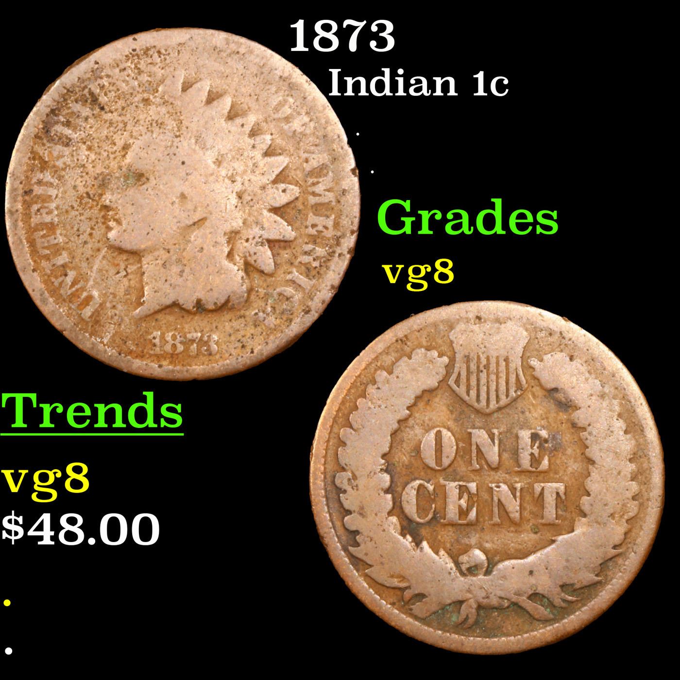 1873 Indian Cent 1c Grades vg, very good.