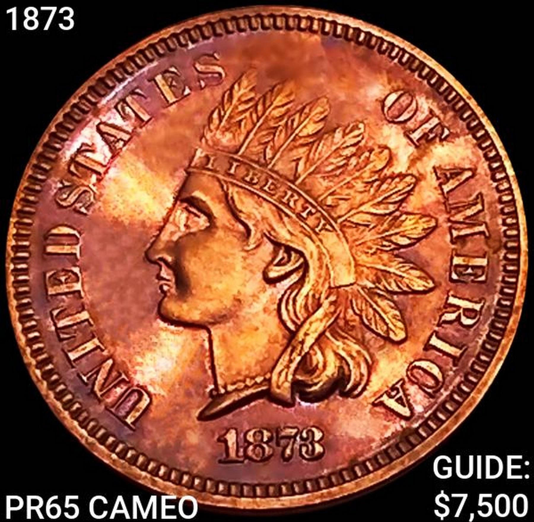 1873 Indian Head Cent GEM PROOF CAM