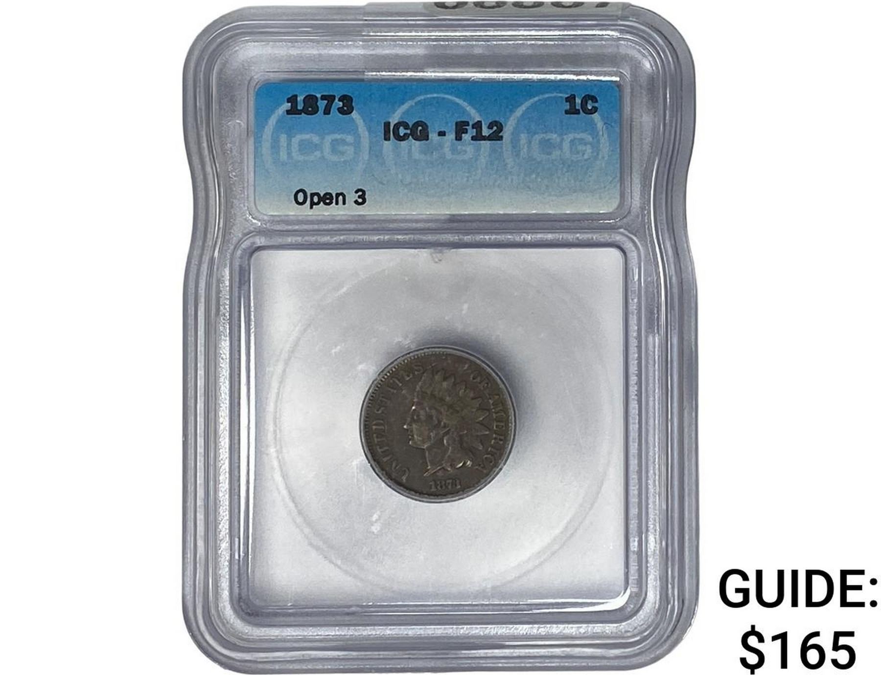 1873 Indian Head Cent ICG F12
