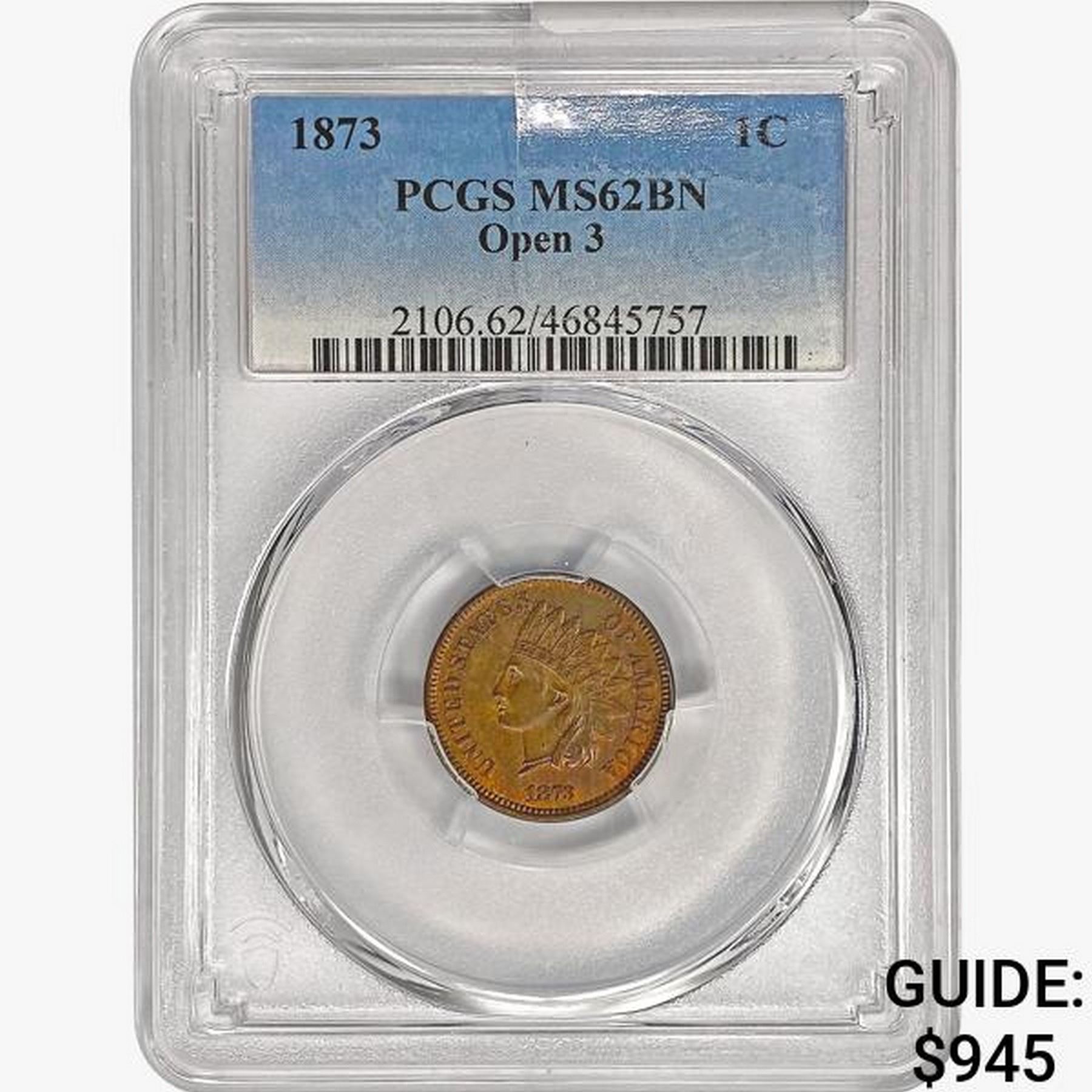1873 Indian Head Cent PCGS MS62 BN, Open 3