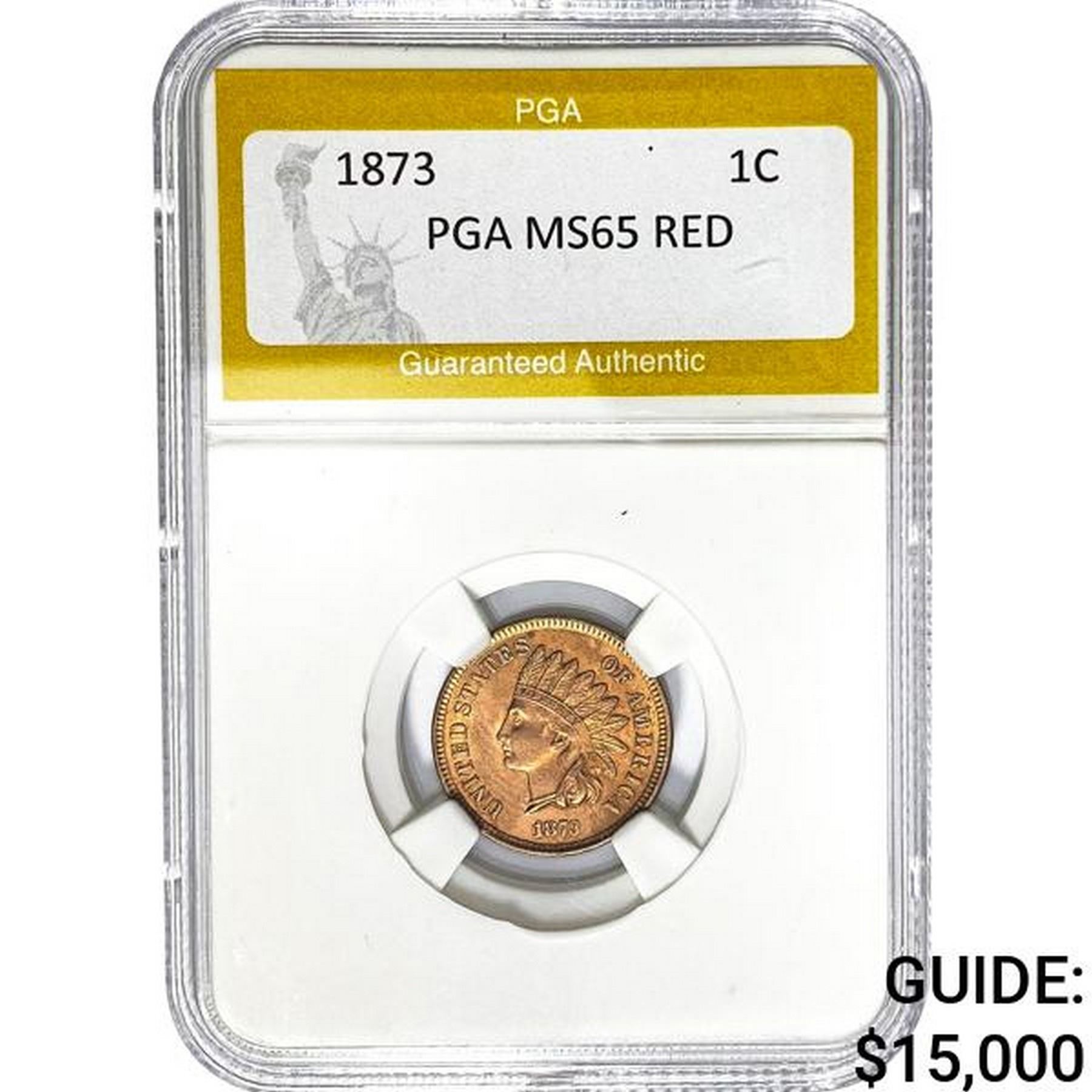 1873 Indian Head Cent PGA MS65 RED