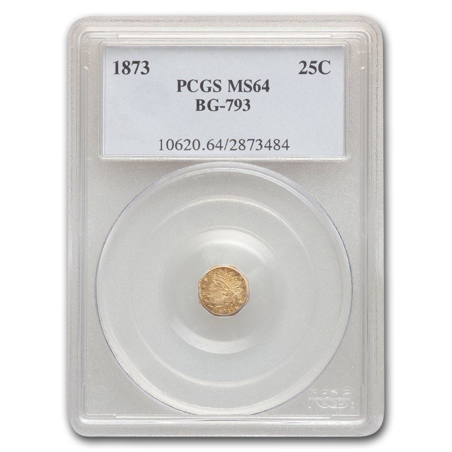 1873 Indian Octagonal 25 Cent Gold MS-64 PCGS (BG-793)