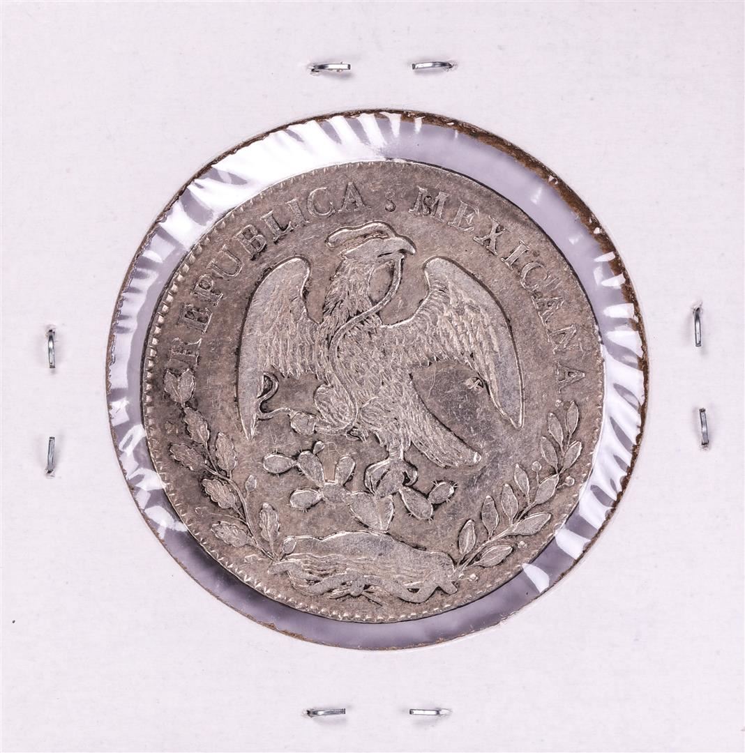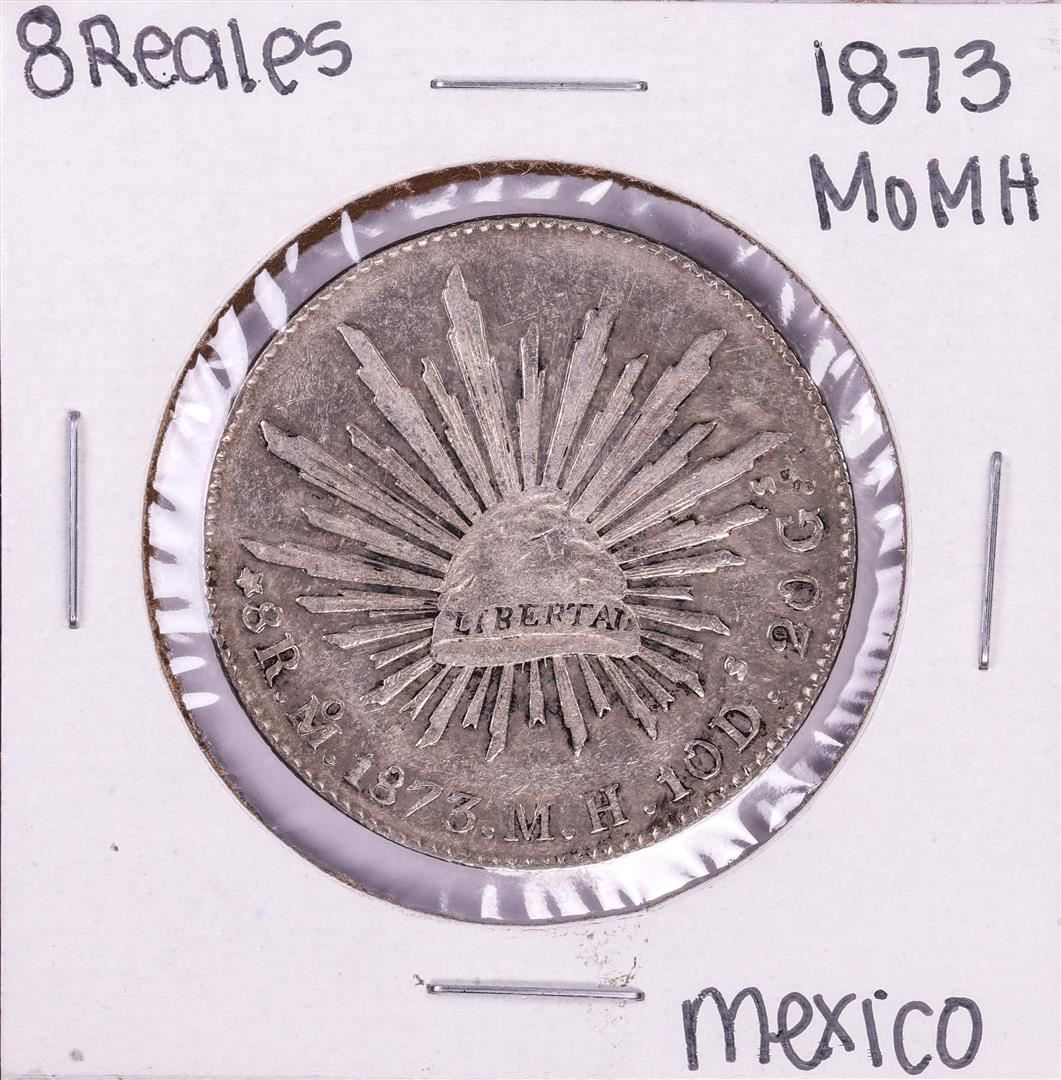One 1873 Mo MH Mexico 8 Reales Silver Coin.