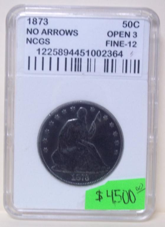 NCGS graded Fine-12!! This is an extremely difficult to locate, one year only type coin with very low mintage. Only 214,200 coins of this type were ever produced and most were melted down after passage of the Pitman act in 1918. Don't miss this chance to own a highly desirable piece of American Numismatic history!!