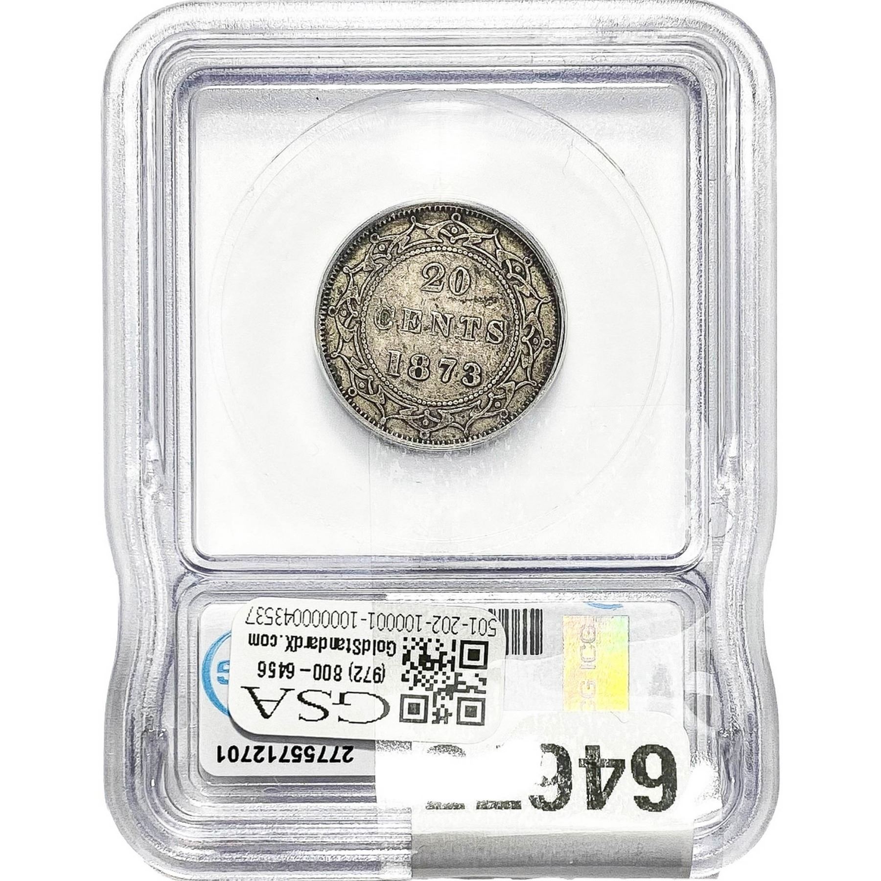 e. Coins sold referencing a third-party grading service are sold “AS IS” without any express or implied warranty, except for a guarantee by GSA that they are genuine. Removal or alteration of the holder, voids all of Bidder’s claims concerning that Product. Certain warranties may be available from the grading services and Bidders are referred to them for further details: Numismatic Guaranty Corporation (NGC), PO Box 4776, Sarasota, FL 34230, www.ngccoin.com/services/writtenguarantee.asp; Professional Coin Grading Services (PCGS), PO Box 9458, Newport Beach, CA 92658, www.pcgs.com/guarantee.html; ANACS, 6555 S. Kenton St., Ste. 303, Englewood, CO 80111; and Independent Coin Grading Co. (ICG), 7901 East Bellview, Ave., Suite 50, Englewood, CO 80111.
