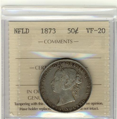 1873 Nfld 50¢. A nice clean example graded ICCS VF20