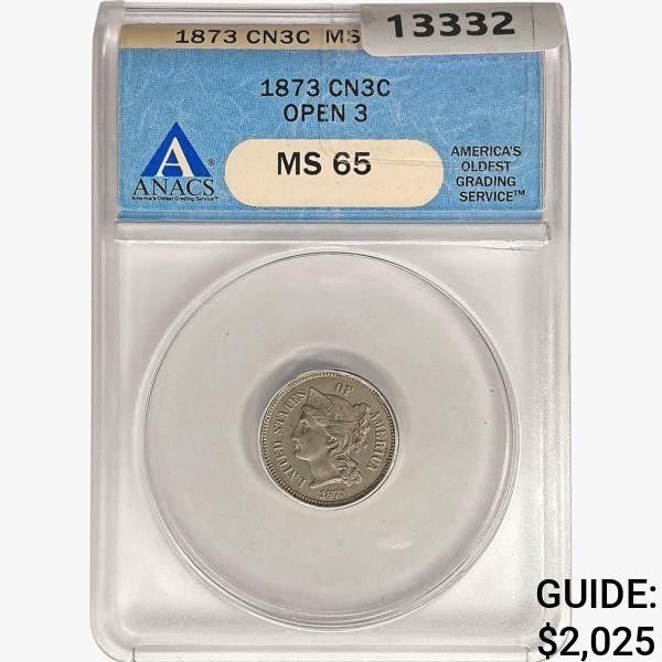 1873 Nickel Three Cent ANACS MS65 Open 3
