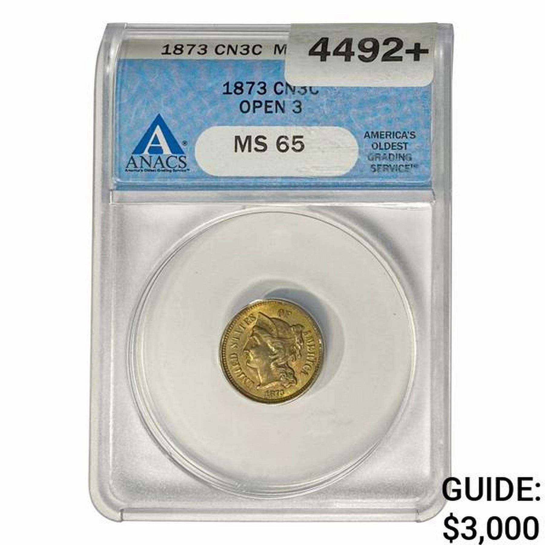 1873 Nickel Three Cent ANACS MS65 Open 3