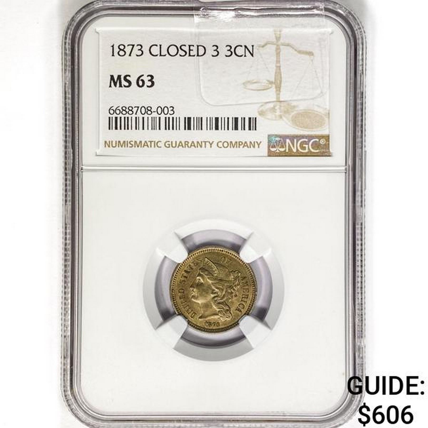 1873 Nickel Three Cent NGC MS63 Closed 3