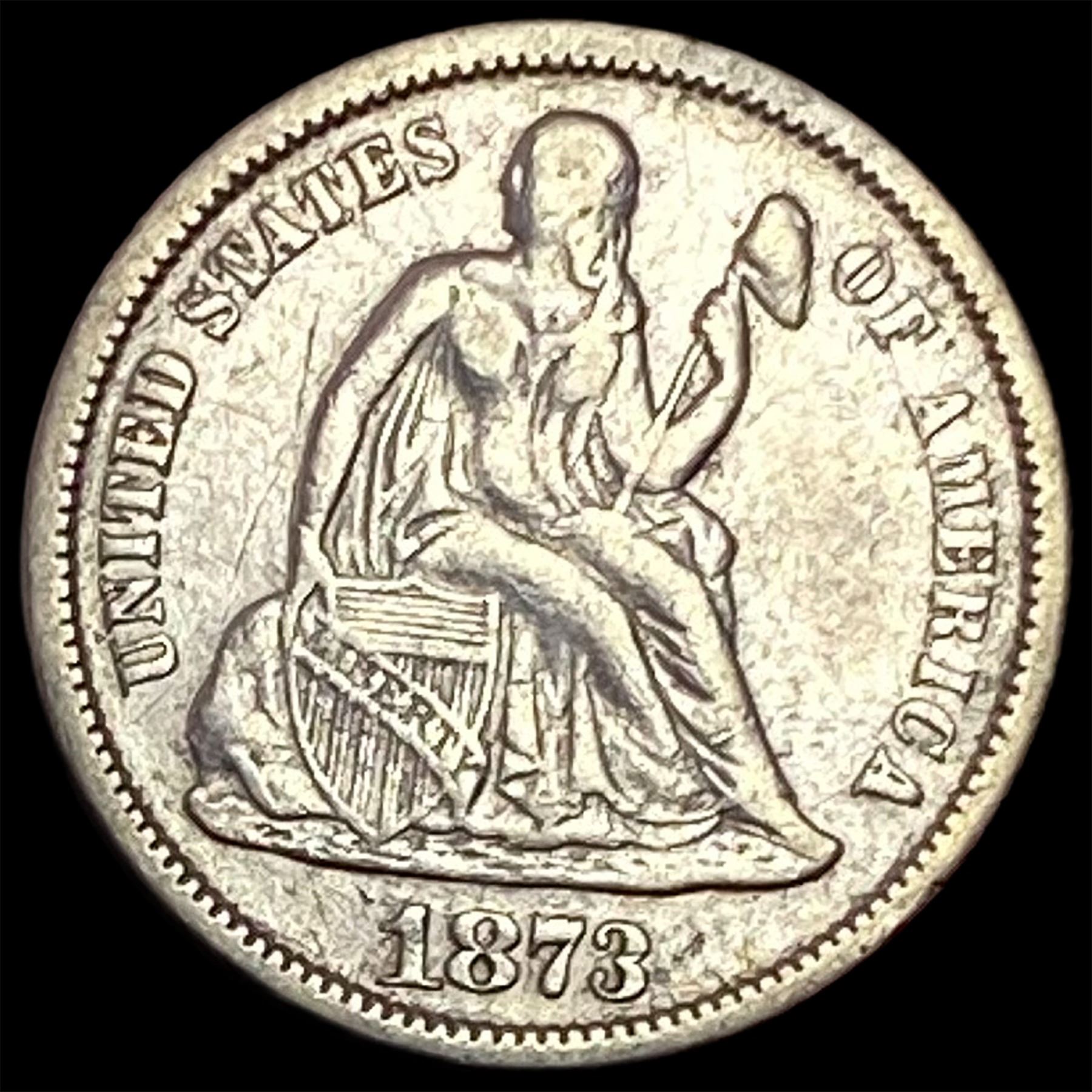 1873 No Arrows/Open 3 Seated Liberty Dime CHOICE AU