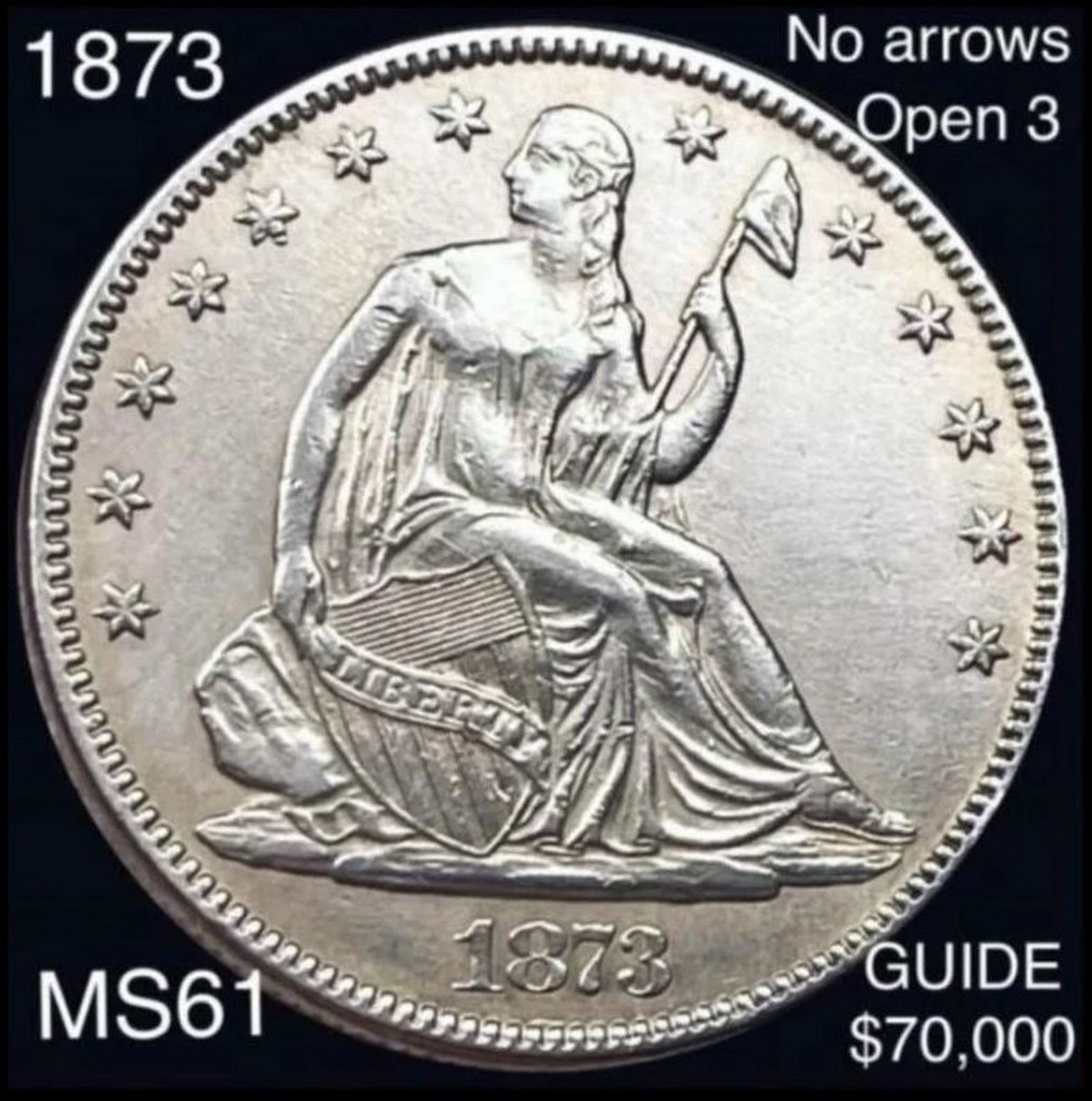1873 No Arrows Open 3 Seated Liberty Half Dollar UNCIRCULATED