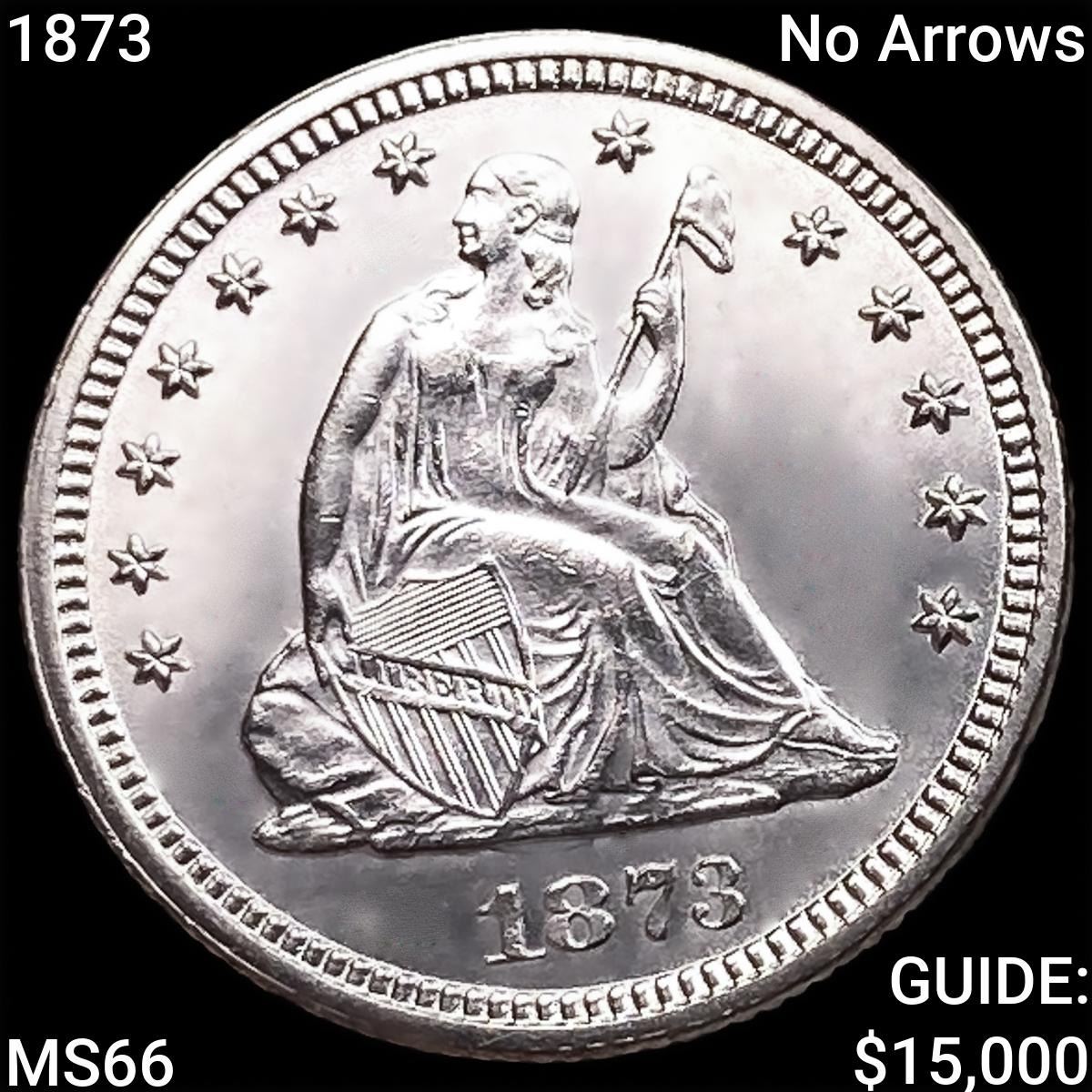 1873 No Arrows Seated Liberty Quarter GEM BU