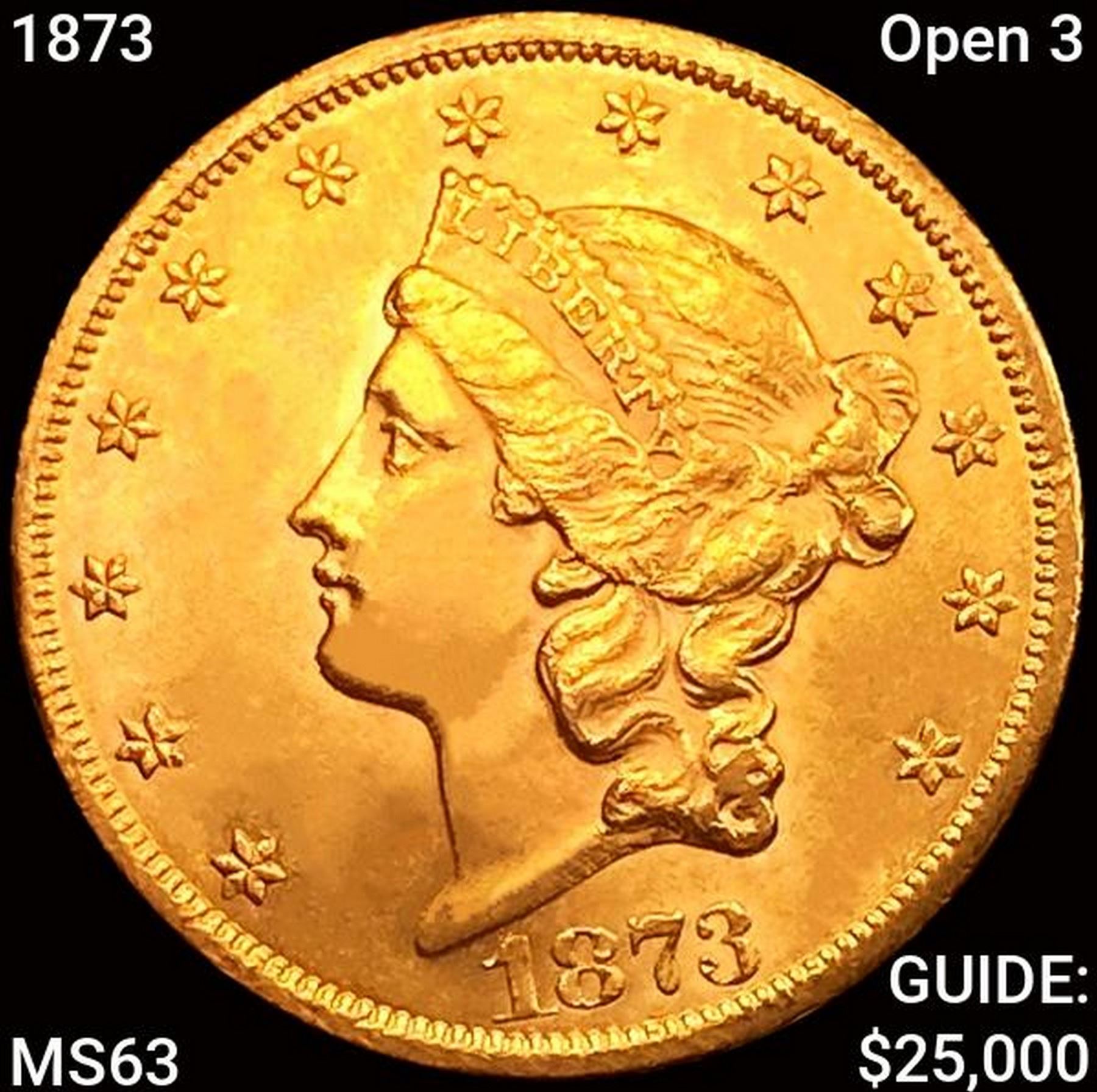 1873 Open 3 $20 Gold Double Eagle CHOICE BU
