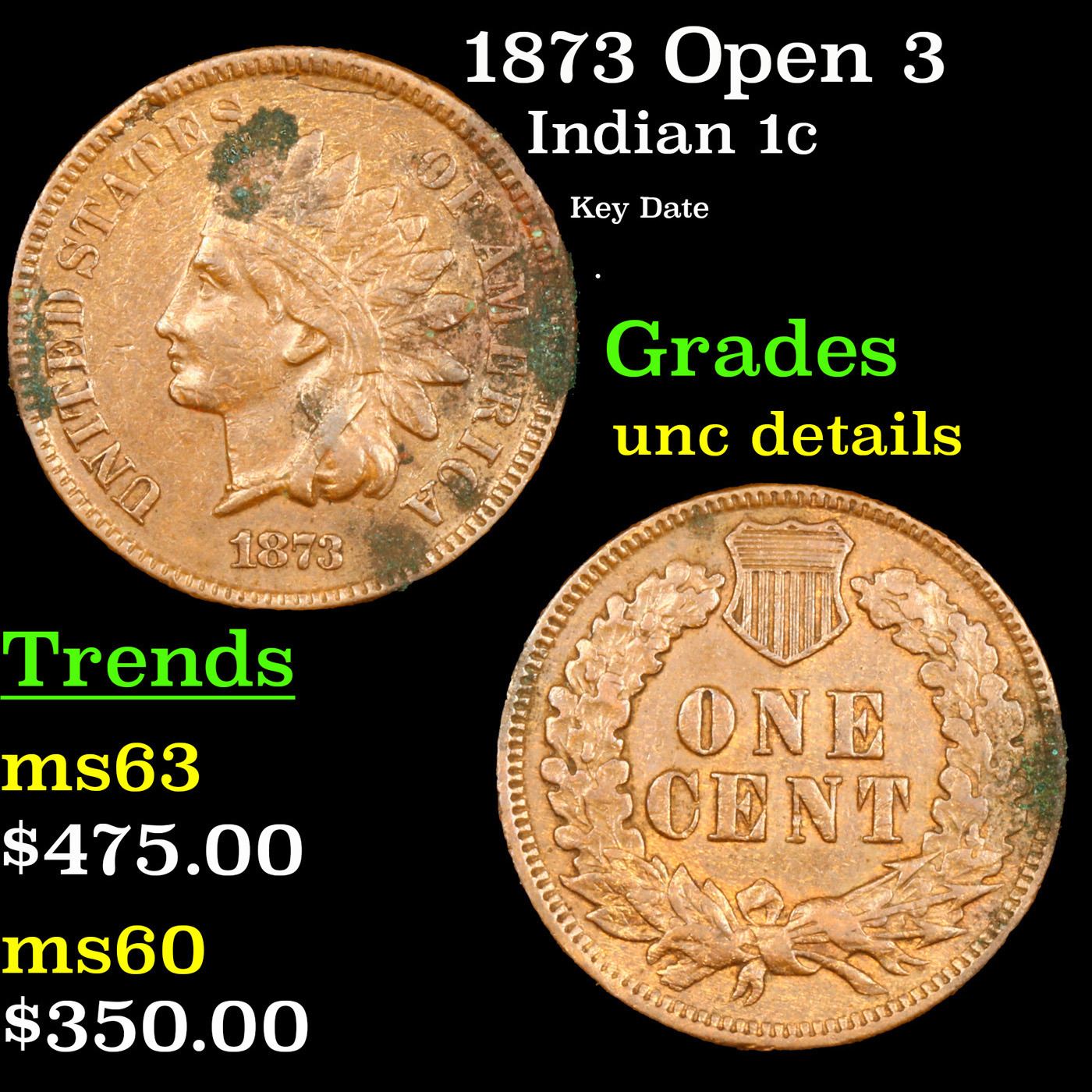 1873 Open 3 Indian Cent 1c Grades Unc Details.