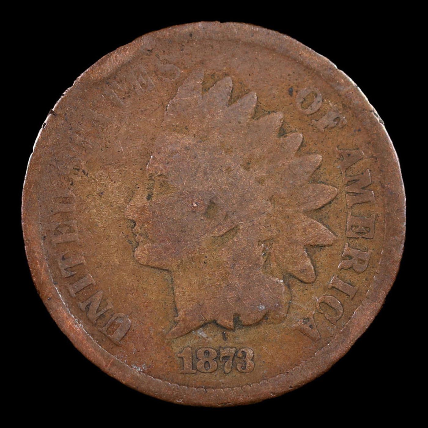 1873 Open 3 Indian Cent 1c Grades g+.