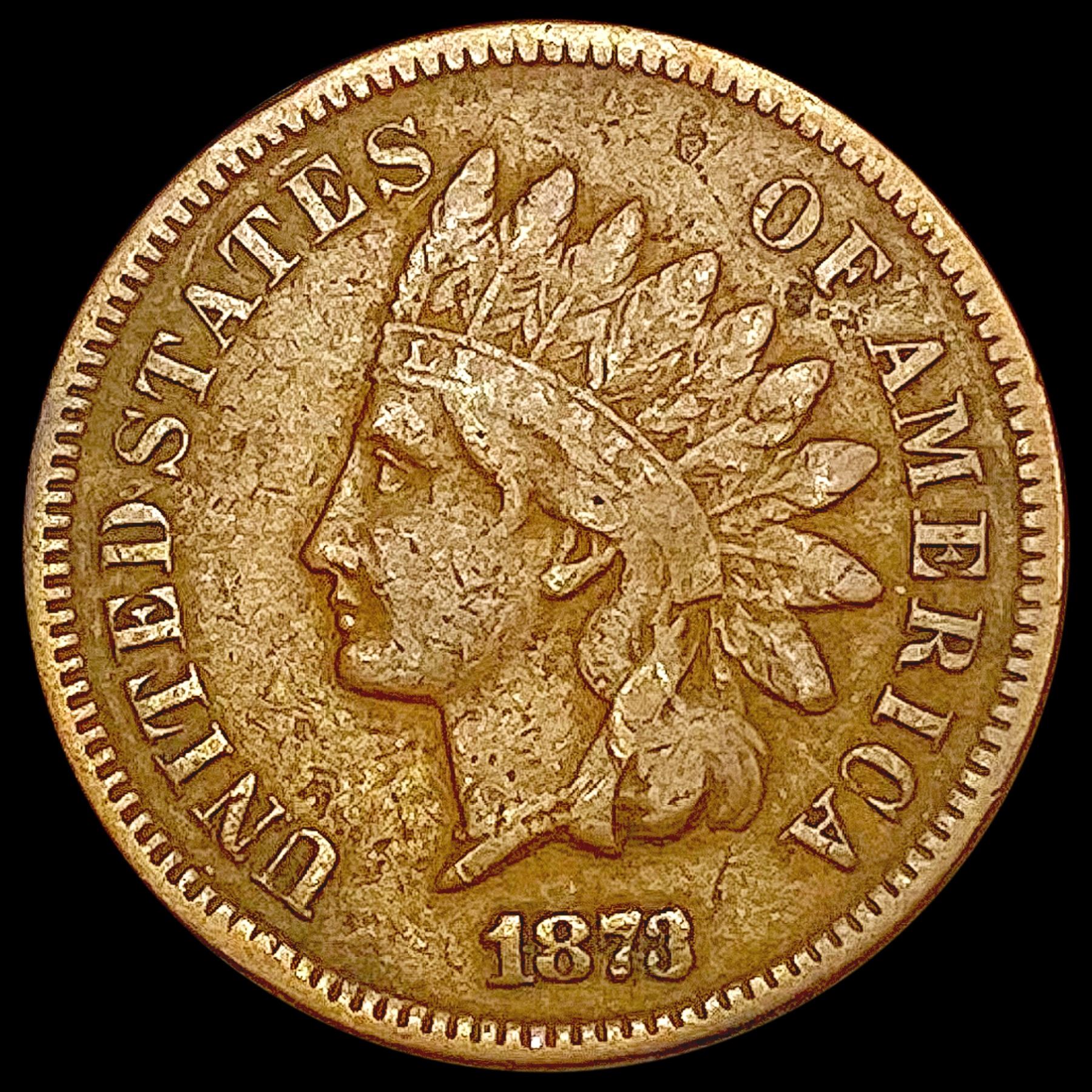 1873 Open 3 Indian Head Cent LIGHTLY CIRCULATED