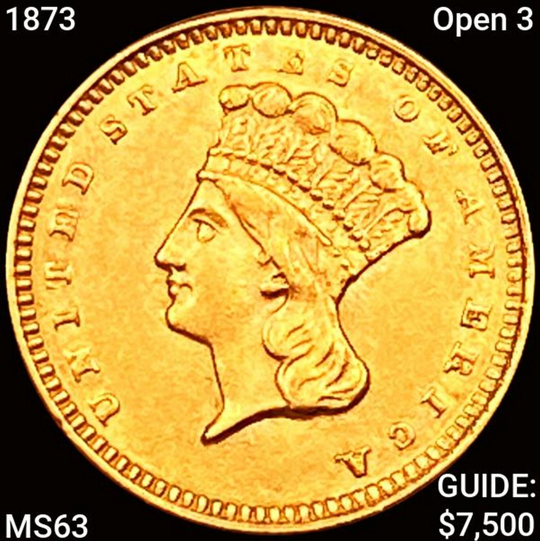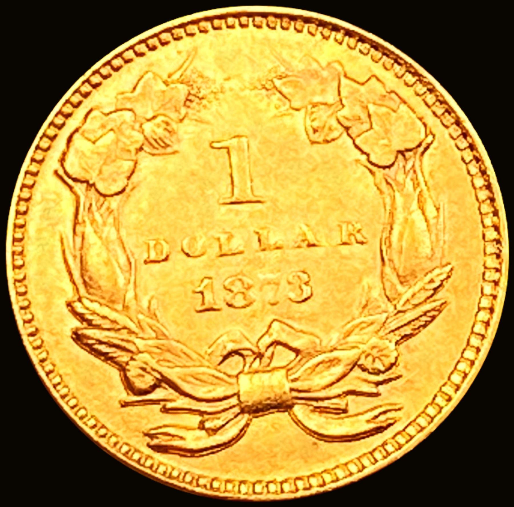 1873 Open 3 Rare Gold Dollar CHOICE BU