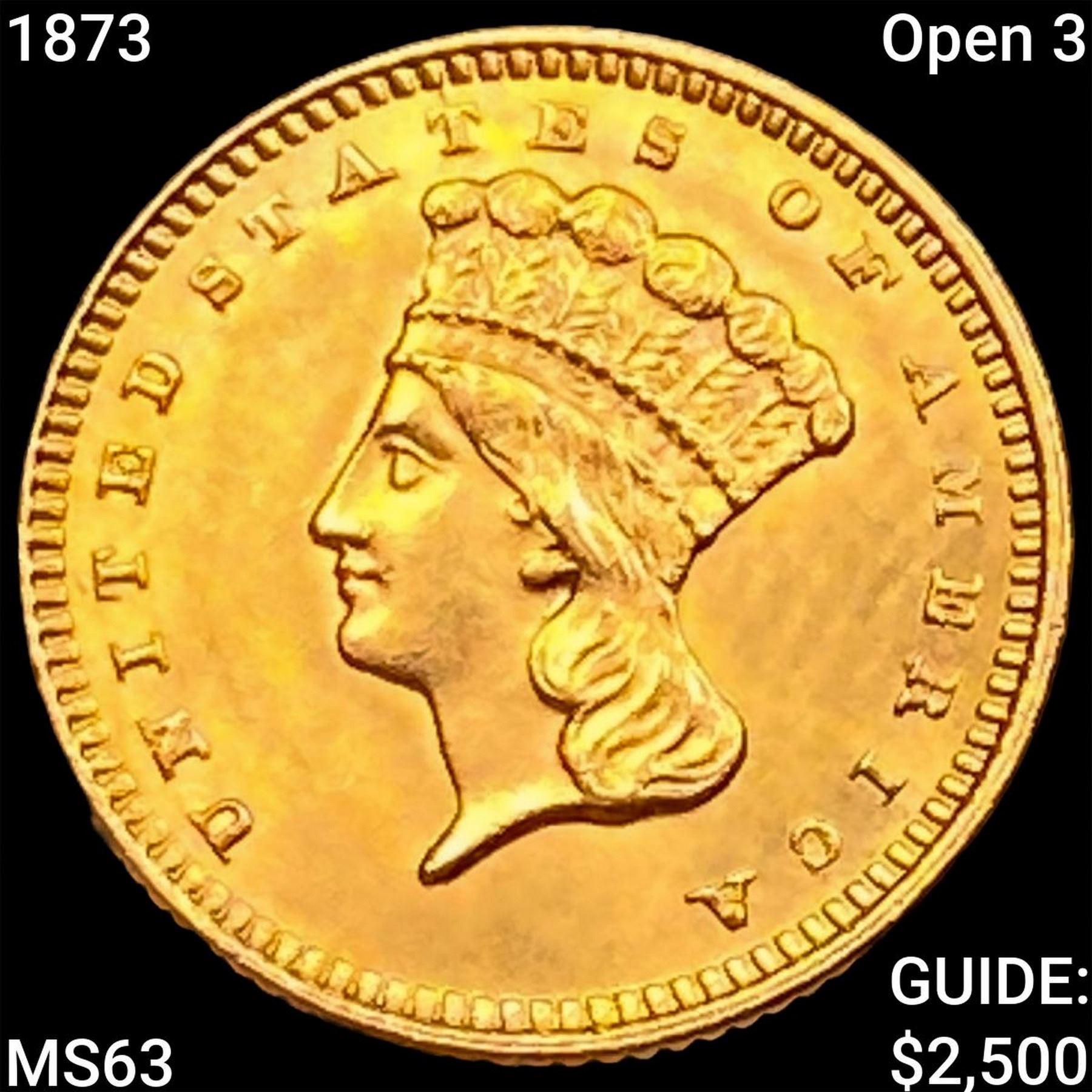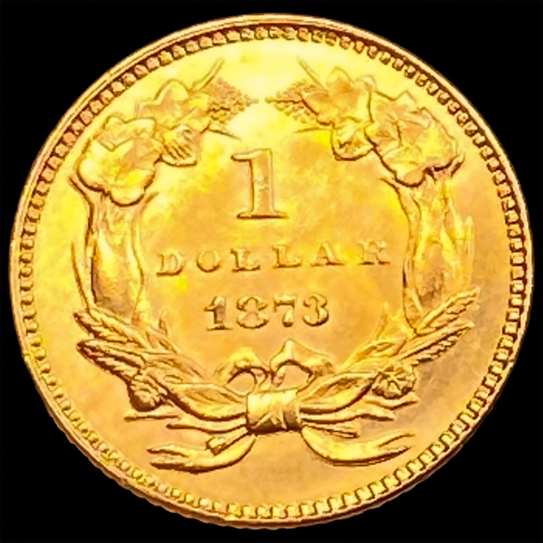 1873 Open 3 Rare Gold Dollar CHOICE BU