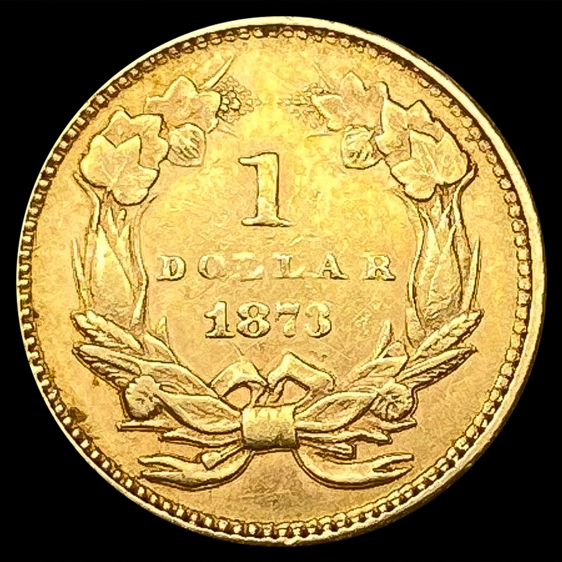 1873 Open 3 Rare Gold Dollar UNCIRCULATED