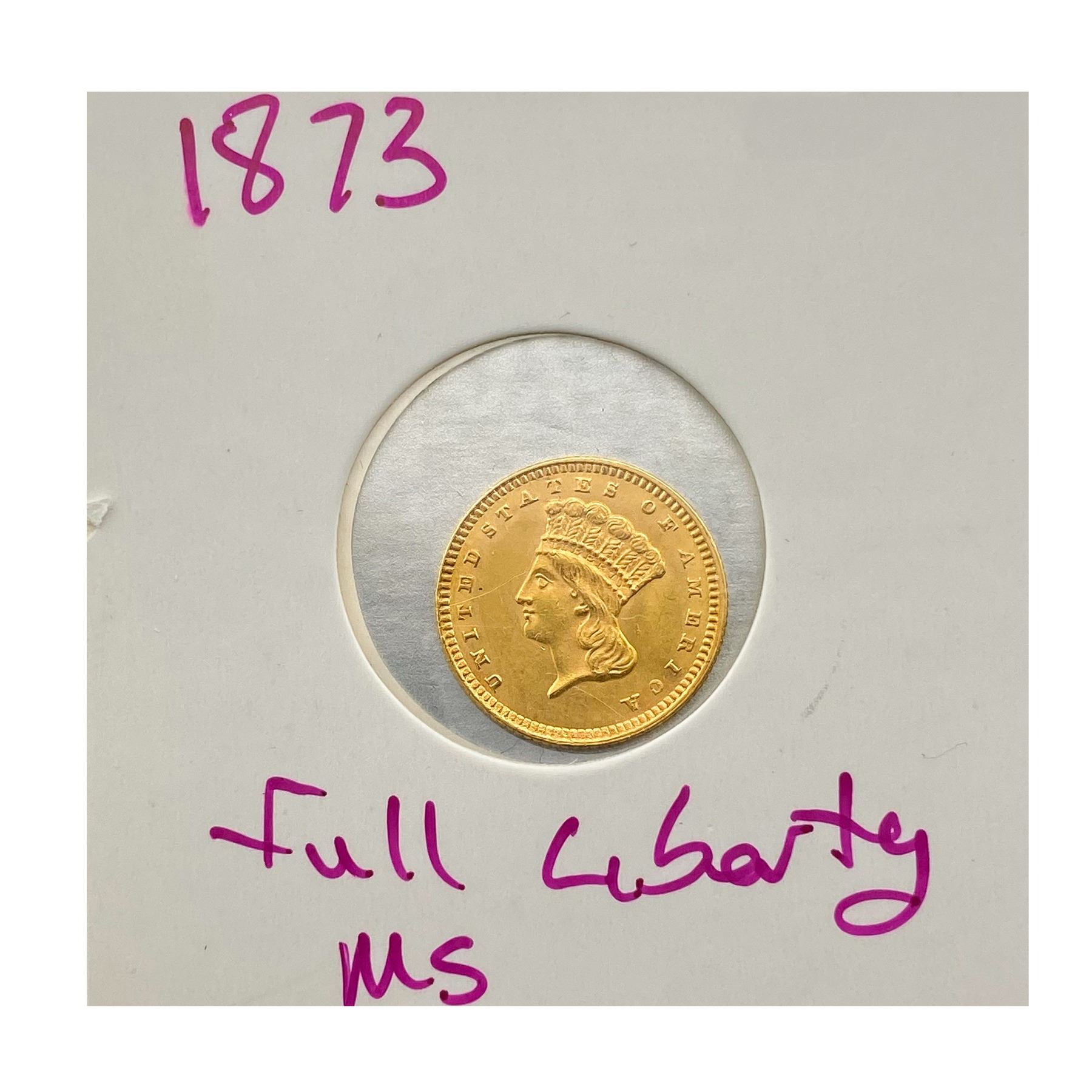 1873 Open 3 Rare Gold Dollar