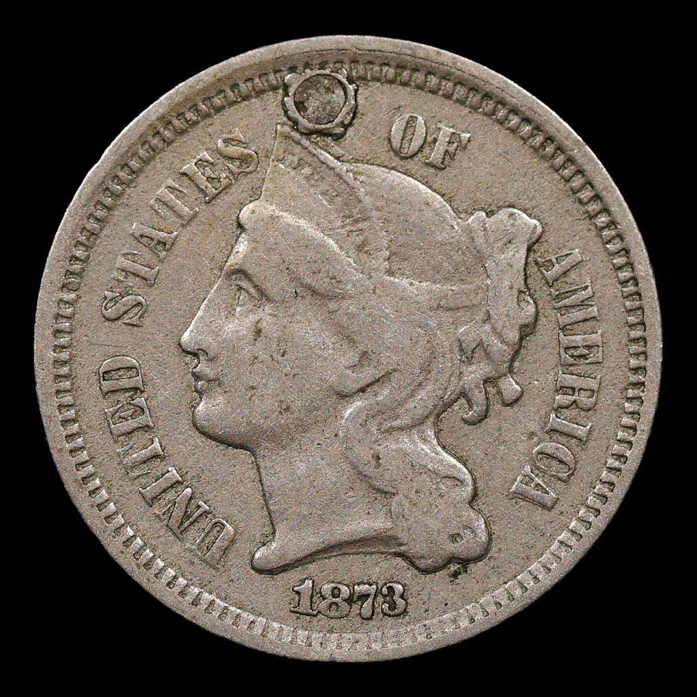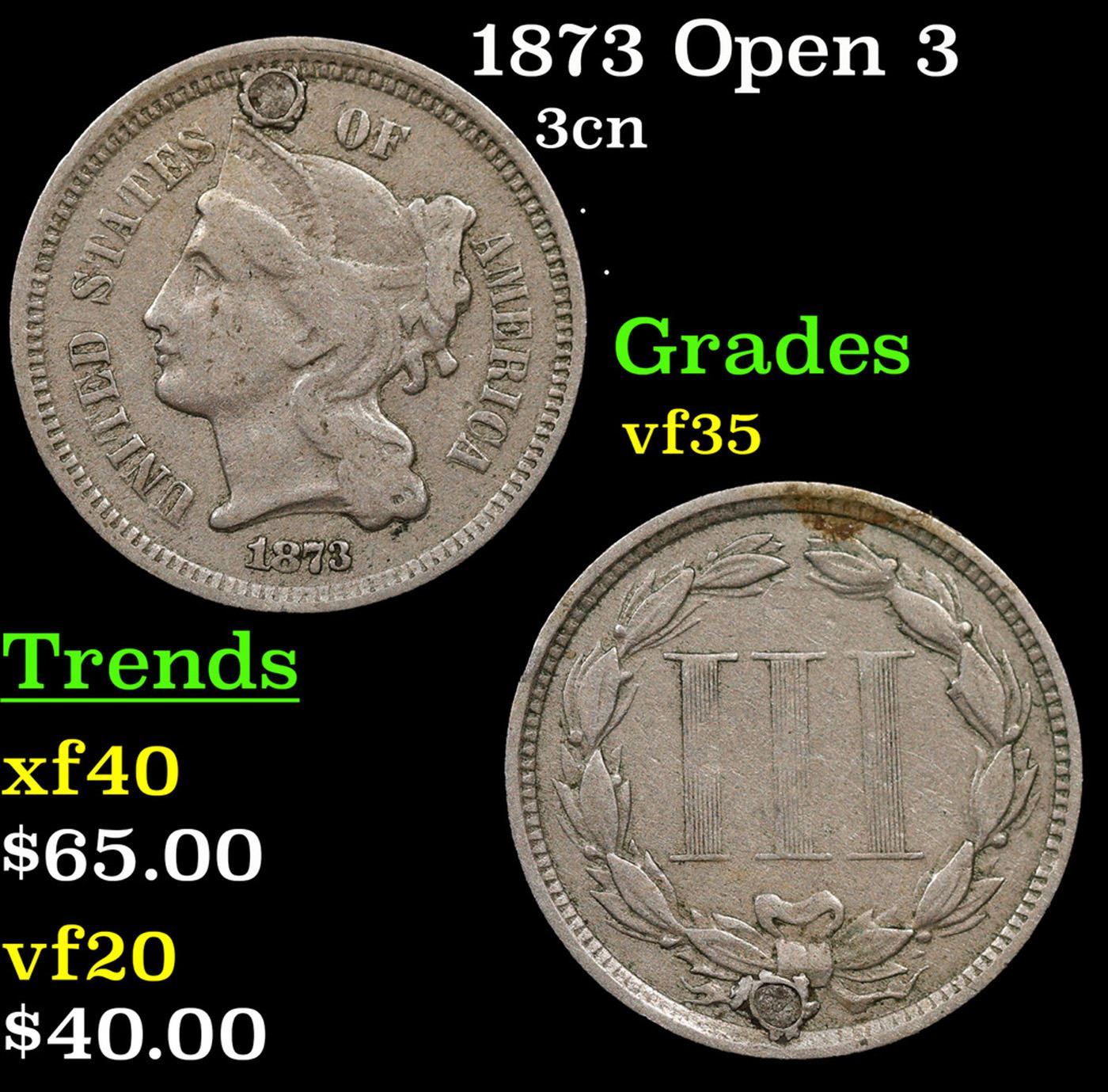 1873 Open 3 Three Cent Copper Nickel 3cn Grades vf++.