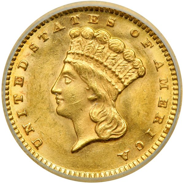 1873 Open 3. ICG graded MS-62. Mostly untoned. The Philadelphia Mint continued to strike gold coins in 1862-79 even though the banks (as well as the Treasury Department) refused to pay them out at "par" for paper money. To acquire gold coins in those years by tendering paper dollars or by cashing a check, one had to pay a premium of anywhere from 4 to 8 percent or higher, thus $108 in paper would buy $100 face value in gold coins. The market didn't stabilize (return to par) until January 1, 1879.