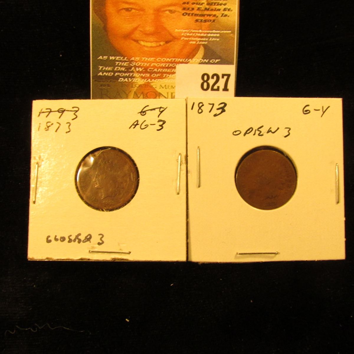 1873 Open & Closed 3 U.S. Indian Head Cents.