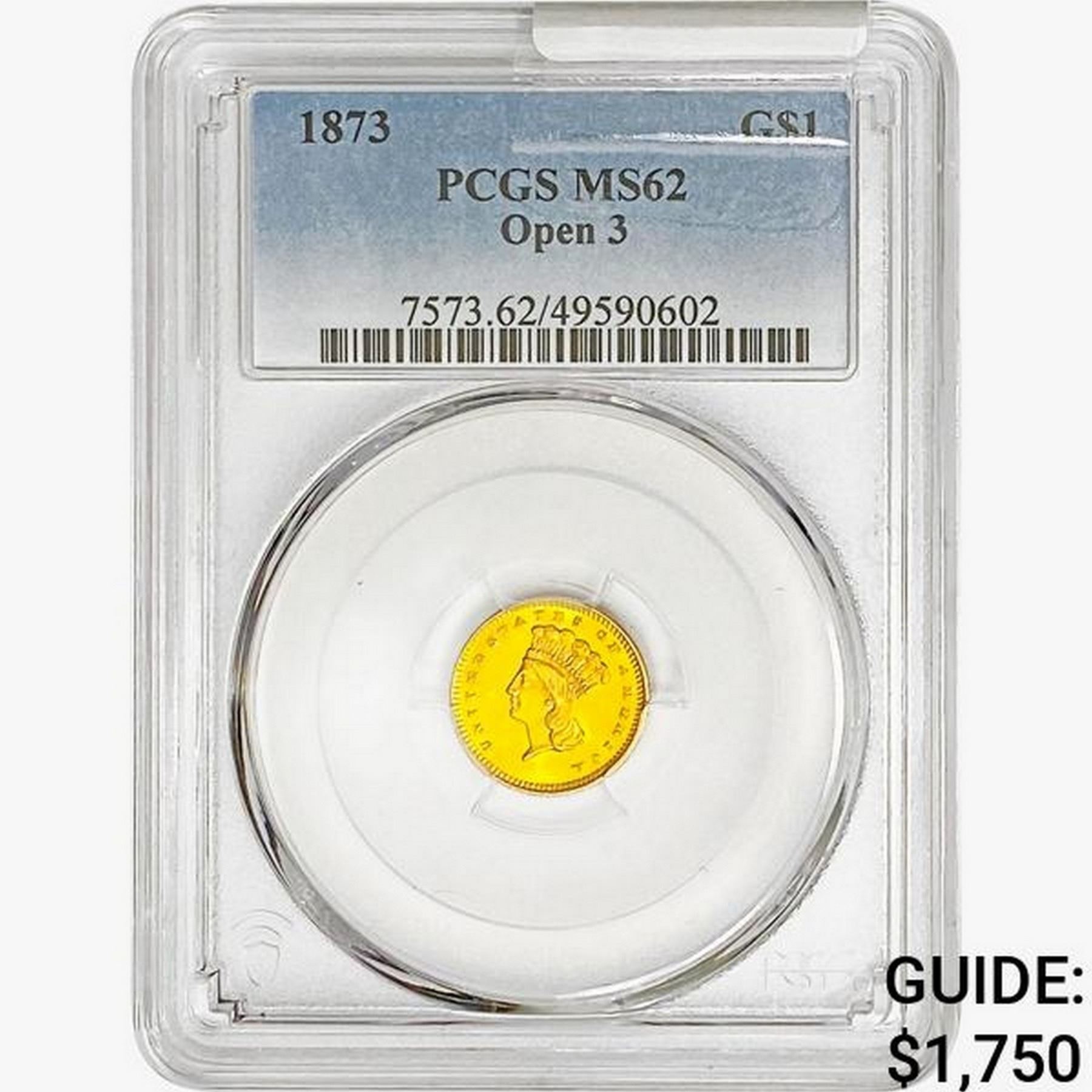 1873 Rare Gold Dollar PCGS MS62 Open 3