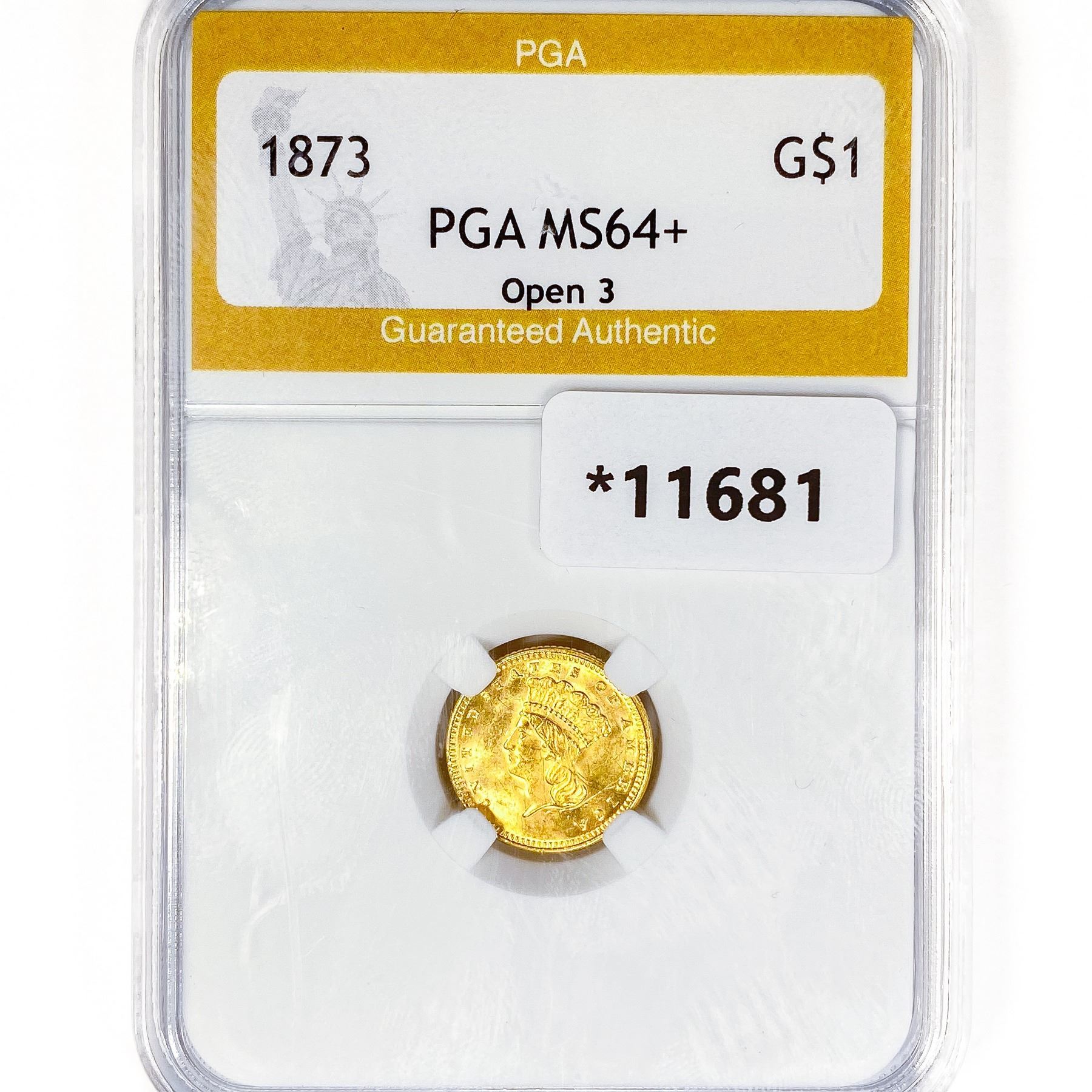 1873 Rare Gold Dollar PGA MS64+ Open 3