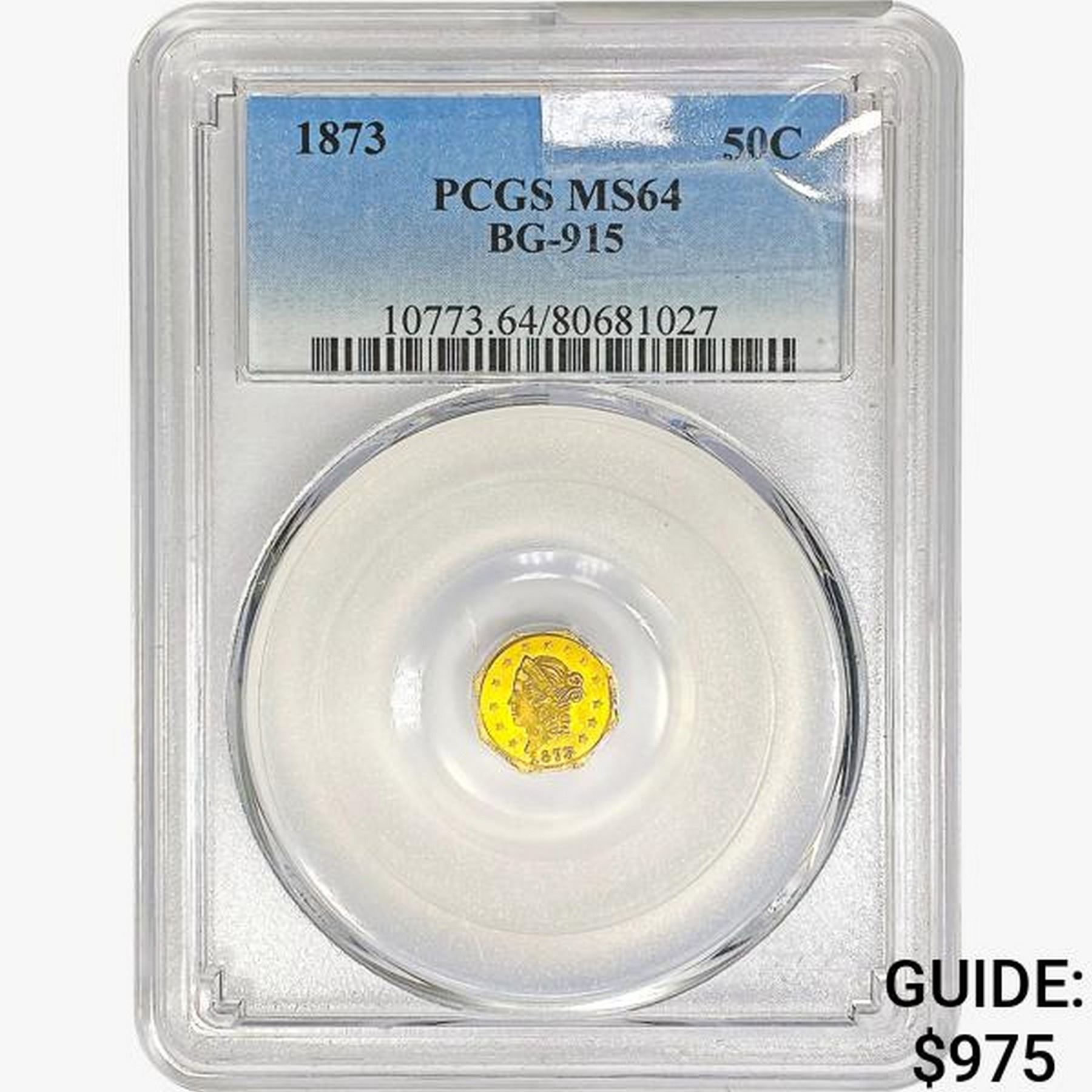 1873 Round California Gold Half Dollar PCGS MS64 B