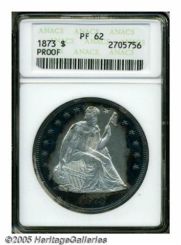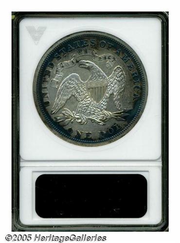 <B>1873<S$1> PR62 ANACS.</B></I> Inky blue and russet color coats the peripheries of this example that has nearly colorless centers that hold a good amount of luster.