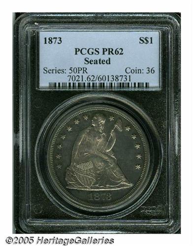 1873 S$1 PR62 PCGS. A deeply toned specimen, ligh