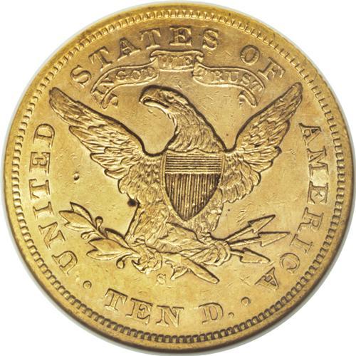 1873-S $10 AU55 NGC. The low mintage 1873-S eagle, one