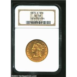 1873-S $10 AU58 NGC. A sharply struck representative that has abundant bright luster, both at the ma